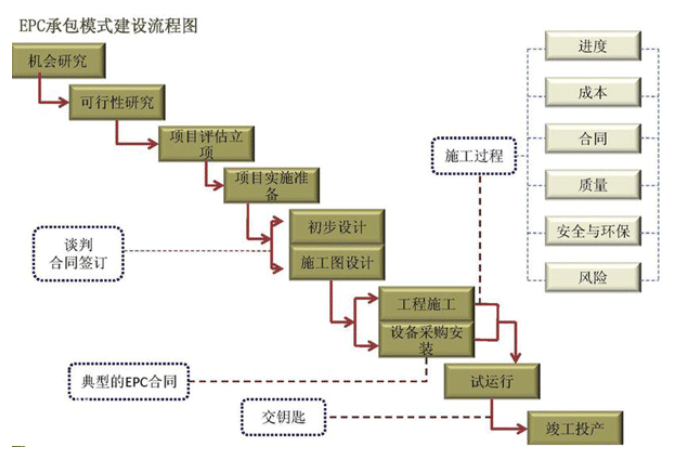 在EPC模式中,Engineering不仅包括具体的设计工作,而且可能包括整个建设工程内容的总体策划以及整个建设工程实施组织管理的策划和具体工作;Procurement也不是一般意义上的建筑设备材料采购,而更多的是指专业设备、材料的采购;Construction应译为“建设”,其内容包括施工、安装、试车、技术培训等。